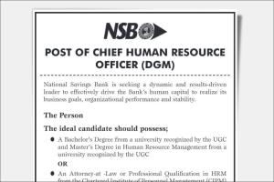 Chief Human Resource Officer – National Savings Bank 2026 Job VacanciesNational Savings Bank1+ week ago 24-Apr-2026Save